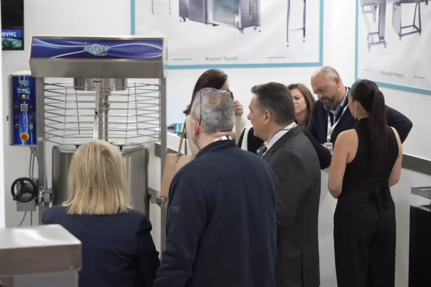 Οι επισκέπτες του περιπτέρου μας είχαν την ευκαιρία να γνωρίσουν από κοντά την τεχνογνωσία και την ποιότητα που χαρακτηρίζουν τα μηχανήματα της INOXMAR — αποτέλεσμα δεκαετιών εμπειρίας και συνεχούς έρευνας στον τομέα του επαγγελματικού εξοπλισμού τροφίμων.